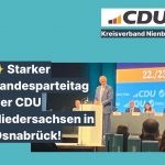 Mit viel Energie und klaren Botschaften fand am Wochenende der Landesparteitag der CDU Niedersachsen in Osnabrück statt. Wir Nienburger Delegierten waren dabei – und haben einen Parteitag erlebt, der Mut gemacht hat und Lust auf die kommenden Aufgaben weckt. Starker