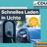 Ein weiterer wichtiger Schritt für die Elektromobilität in unserer Region: In der Gemeinde Uchte entsteht ein neuer Standort im Rahmen des bundesweiten Deutschlandnetzes. Darüber informiert der heimische CDU-Bundestagsabgeordnete Axel Knoerig nach einer Anfrage an das Bundesverkehrsministerium. An der Mühlenstraße in